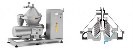 - Продукт поступает в чашу через замкнутую трубопроводную систему. Входные и выходные соединения сепаратора выполнены согласно DIN 11850 или ISO 2037 стандартов. Все части, которые контактируют с обрабатываемыми продуктами, изготовлены из нержавеющей стали.
