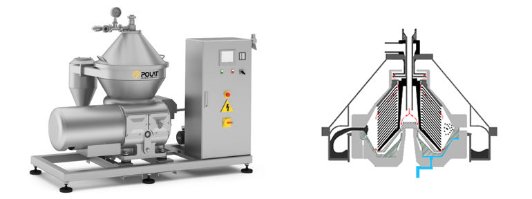 - Cепаратор с автоматической очисткой чаши. Шлам, собирающийся в чаше, сбрасывается через периодические интервалы времени, установленные на панели управления. Открытие чаши происходит за счет воды и управляется электромагнитными клапанами. Чаша сделана из дуплексной нержавеющей стали (DIN 1.4462), используя новейшие технологии, обладает высокой механической прочностью и устойчива к коррозии.