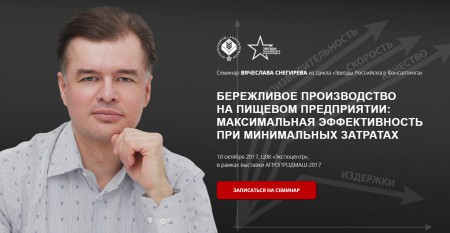 10 октября 2017 г. в рамках деловой программы выставки «Агропродмаш 2017» пройдет семинар Вячеслава Снегирева «Бережливое производство: максимальная эффективность при минимальных затратах».