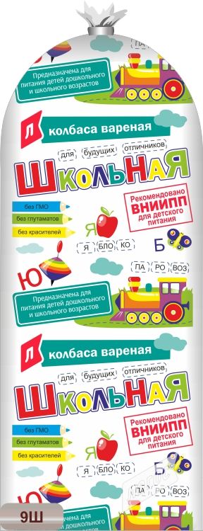 Для такого «школьного» бутерброда нужна специальная «школьная колбаса», высокого качества, вкусная и полезная, как правило, это вареная колбаса типа «Докторская», а для такой колбасы нужна надежная оболочка с «классным» дизайном.