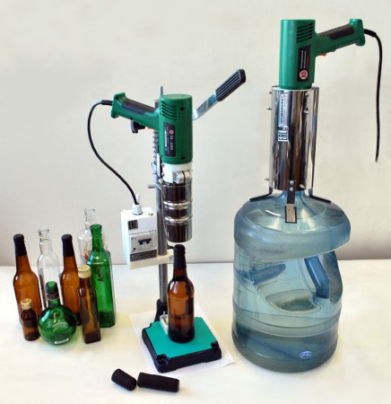 Устройство УУ-4Т переносное предназначено для укупорки 19 литровых ПЭТ-бутылей для оснащения кулеров, например в составе ДУЭТ. При работе оператор накладывает на горловину бутылки защитный диск из тонкого картона, накидывает на горловину бутыли термоусадочный колпачок и вручную устанавливает устройство на бутыли таким образом, чтобы её горловина оказалась в рабочей зоне термокамеры. Для удобства работы оператора термокамера устройства снабжена упорами, которые обеспечивают заданное взаимное расположение горловины тары и нагревателя. Нажимая на кнопку оператор включает нагреватель и поток горячего воздуха усаживает колпачок на горловине бутыли. Время нагрева подбирается оператором экспериментально и составляет обычно 4-5 секунд. Отключив нагреватель оператор убирает устройство с горловины тары. Общая производительность устройства УУ-4Т переносного составляет 250-300 шт./час.