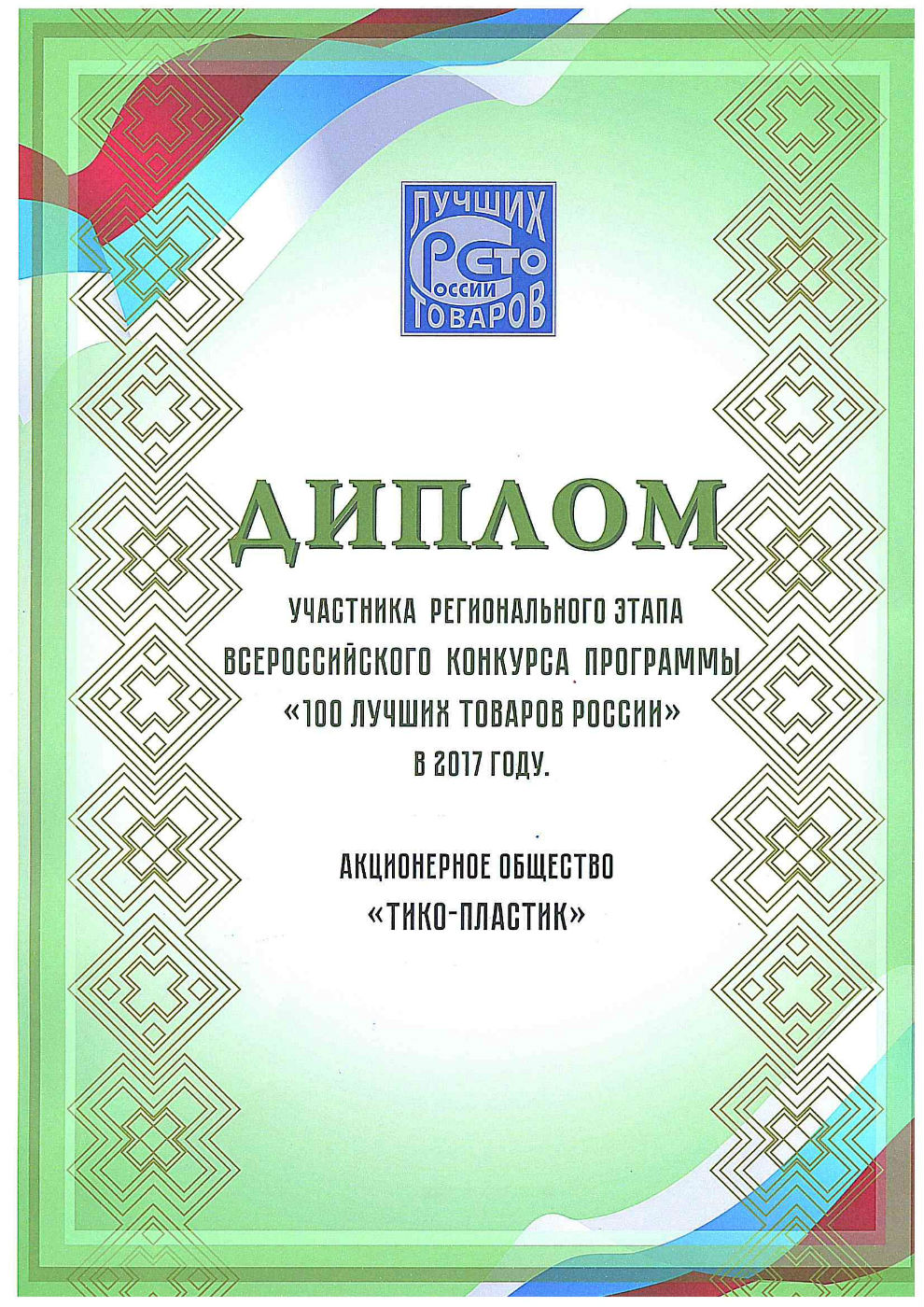 В сентябре состоялось подведение итогов регионального этапа всероссийского конкурса программы «100 лучших товаров». ТИКО-Пластик было награждено дипломом.