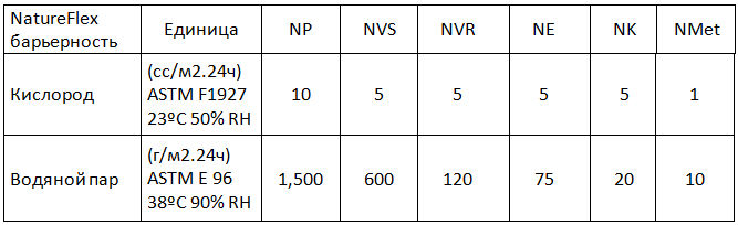 Барьерные характеристики некоторых целлюлозных пленок NatureFlex, подлежащих процессу компостирования