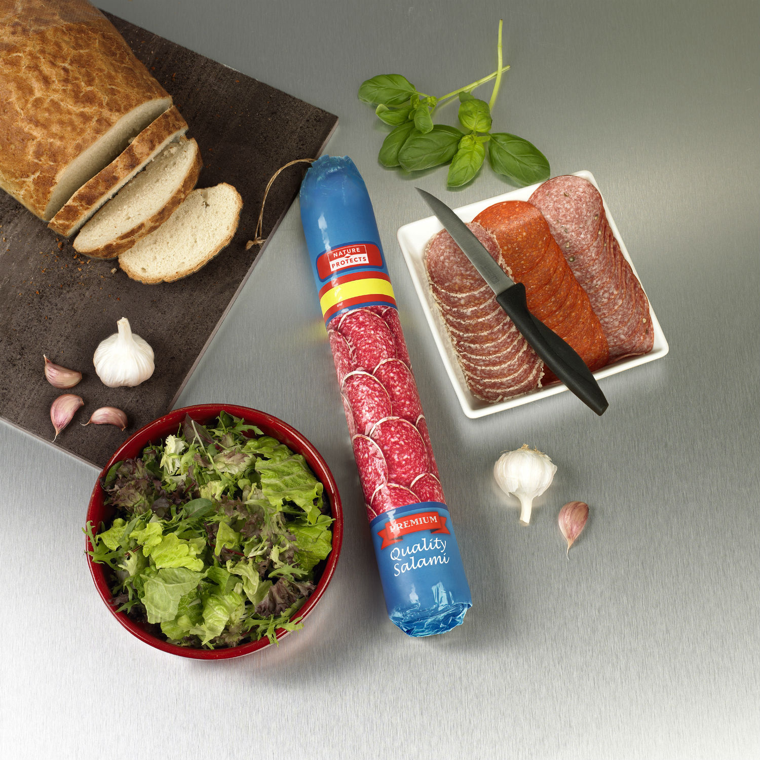 Наблюдая за европейским рынком, можно сделать вывод, что данные пленки для упаковки колбасы салями используют те, кто являются экспертом в области салями, то есть производители из Италии, Венгрии, Германии. Наряду с термосвариваемыми пленками, хорошие результаты показывают также непокрытые пленки типа P (NP), в которые колбасу обертывают с закладкой, а затем заклипсовывают или же завязывают шнурком.