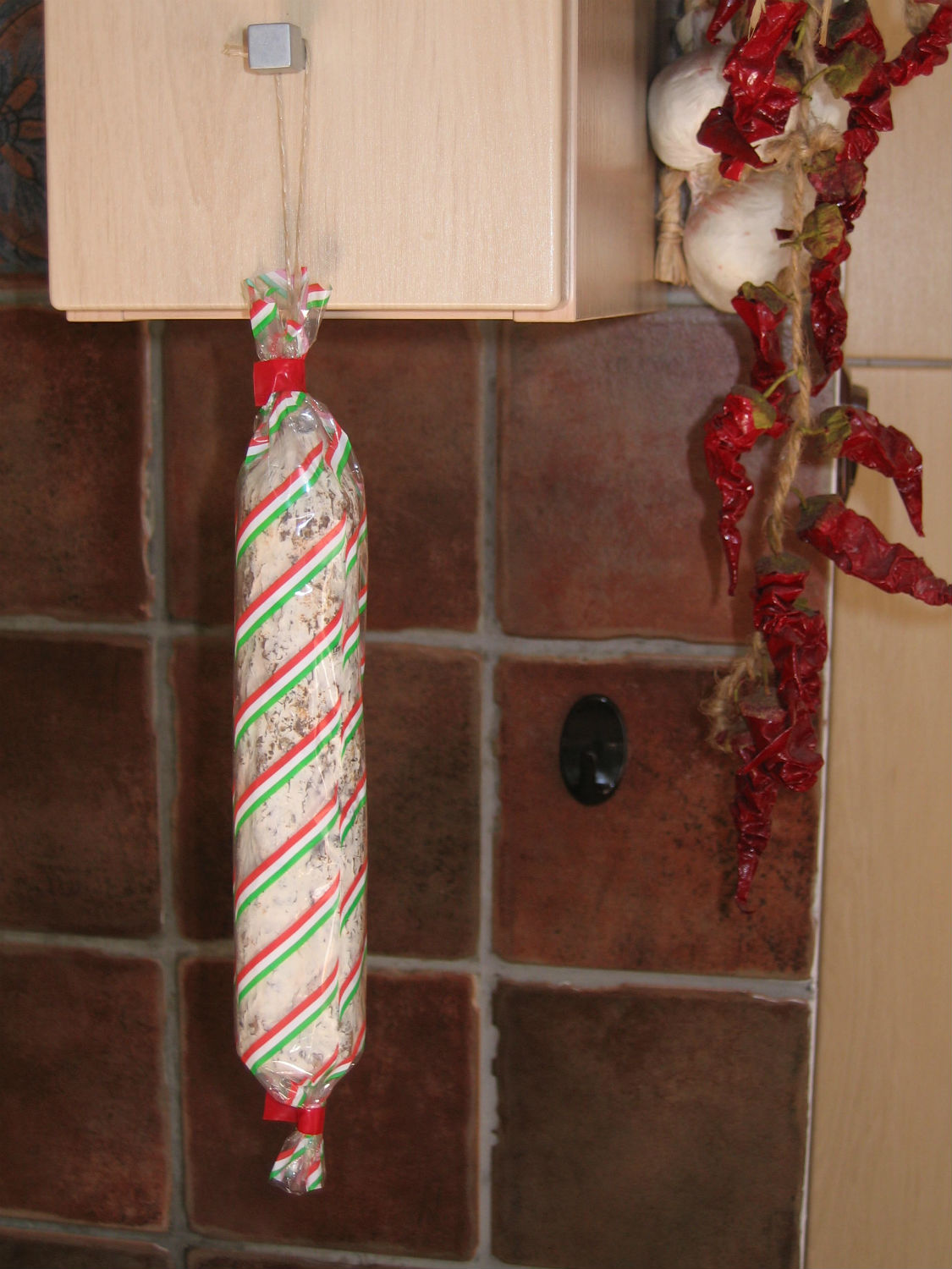 Из этого следует, что для упаковывания колбасы салями в случае, когда она находится в термосвариваемой или же заклипсованной упаковке, вместо барьерной для водяного пара пленки из пластмассы, лучше использовать целлюлозные пленки целлофан и NatureFlex™, пропускающие влагу. Данные пленки обеспечат хранящимся в ней колбасам более выгодную, более сухую среду, отсутствие возможности проникновения во внутрь упаковки „нового” кислорода, они задержат внутри упаковки аромат, который, как правило, является дополнительной, характерной и ценной чертой колбасы.