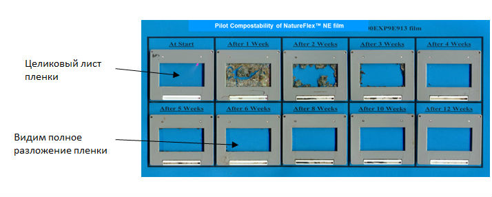 В ходе научно-технических работ, проводимых в нашем департаменте исследований и разработок, в некоторых пленках произошла замена используемых в производственном процессе химических веществ на более нейтральные и благоприятные для человеческого здоровья и окружающей среды. После введенных изменений так называемая „сконцентрированная химическая капля”, находящаяся в компосте, не имеет негативного влияния на окружающую среду, не несет никакого вреда, не представляет опасности. Морковь из такого огорода не содержит ни тяжелых металлов, ни других химических субстанций. Такой компост назовем нейтральным / благоприянтым. Такую пленку можно назвать пленкой, поддающейся процессу компостирования. Такой пленкой является NatureFlex. Пленка NatureFlex подлежит процессу компостирования и является биоразлагаемой.