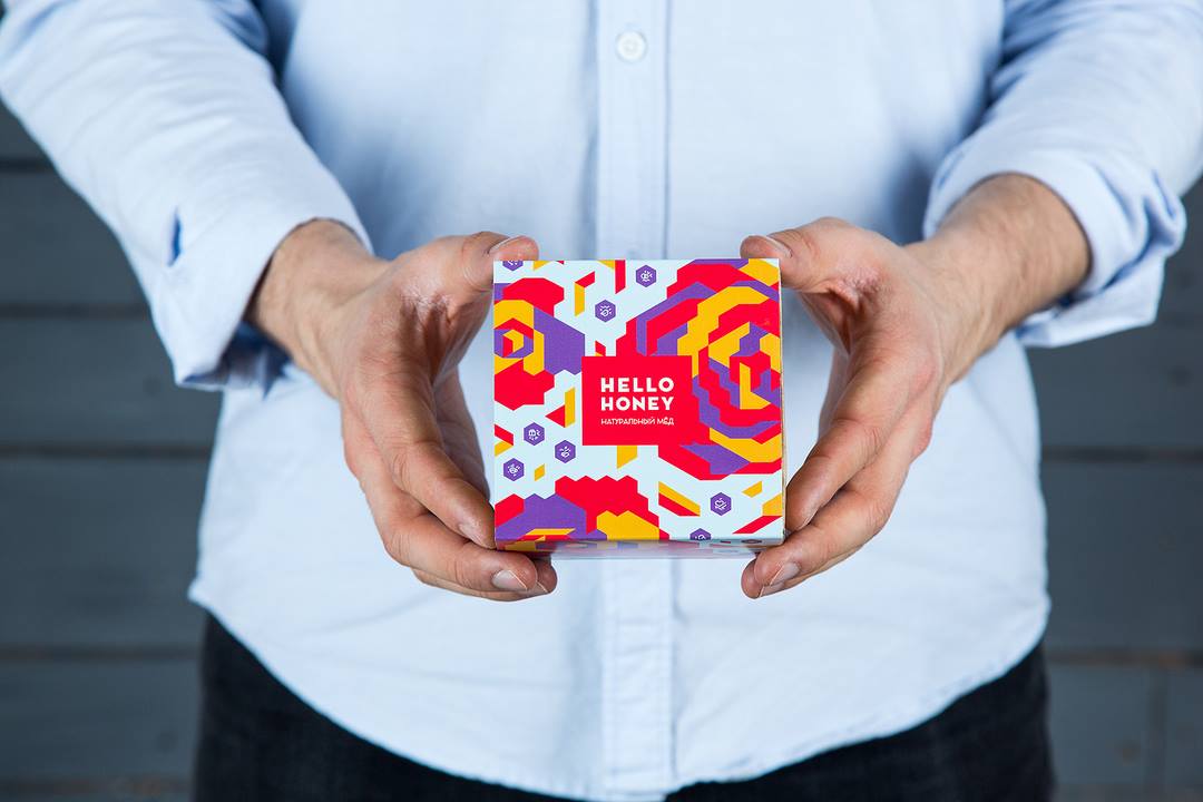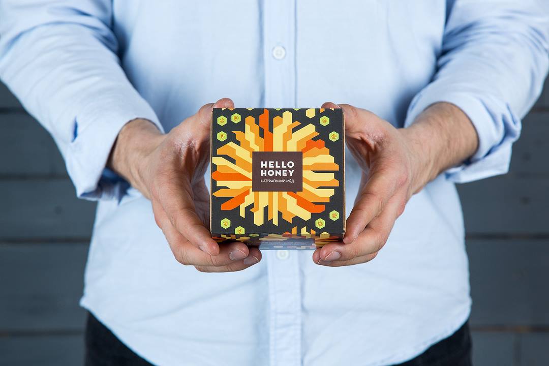 Нежный комплимент для прекрасной дамы от команды Hello, honey — баночка мёда 90 мл. в яркой коробке в цветочном стиле.