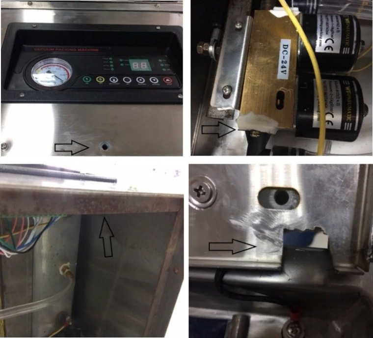 - в исполнении рабочей камеры и корпуса — у вакуумника Hualian камера литая, у неизвестного производителя сварные швы не имеют антикоррозийной защиты и уже покрылись ржавчиной. Конструкция корпуса также должна быть монолитной, оптимальный материал – нержавеющая сталь;