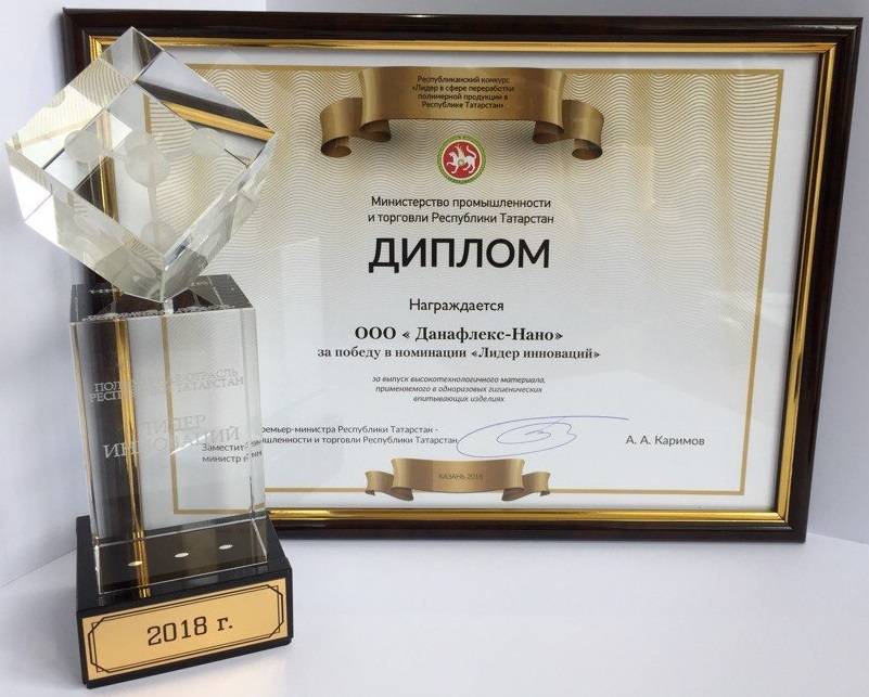 Компания Danaflex одержала победу в республиканском конкурсе «Лидер в сфере переработки полимерной продукции в Республике Татарстан» в номинации «Лидер инноваций».
