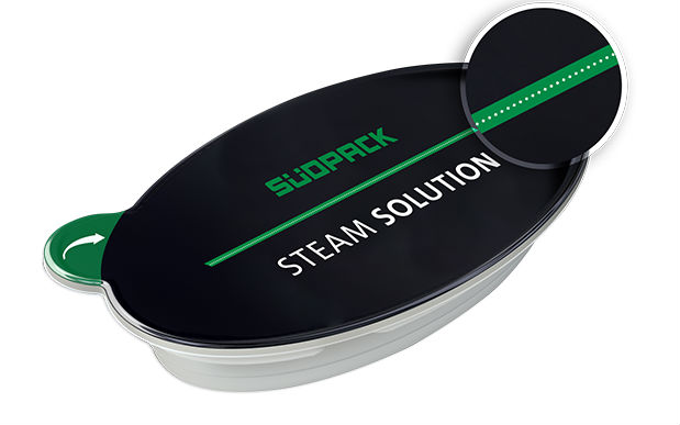 Ну, и важная информация для производителей: Suedpack предлагает упаковку Steam Solution для всех основных типов упаковочных решений: как верхняя пленка для готовых контейнеров; как верхняя пленка для термоформовочного оборудования; как пленка для упаковки вертикальных и горизонтальных упаковочных машин FlowPack. Нет необходимости ни дооснащать имеющееся оборудование, ни менять его настройки. Продукт может быть упакован как под заморозку, так и в модифицированную газовую среду, поскольку наличие специальных «клапанов» не нарушает барьерных свойств пленки.