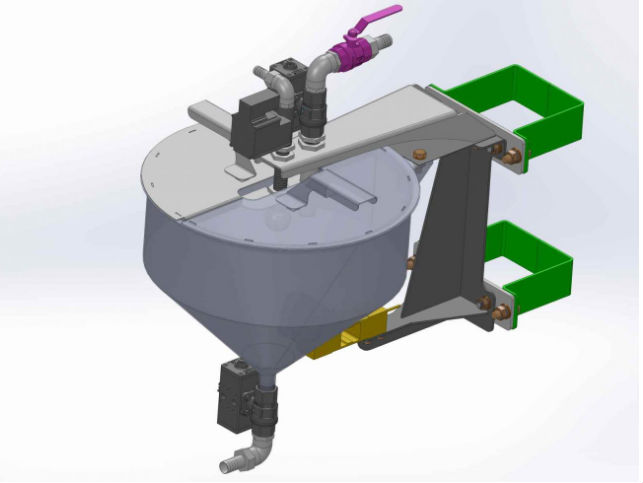 По особым условиям заказчика дозатор солевого раствора предназначен для дозирования малых объёмов. В связи с этим специалисты конструкторского бюро увеличили точность дозирования за счёт применения весового датчика, имеющего меньшую погрешность.