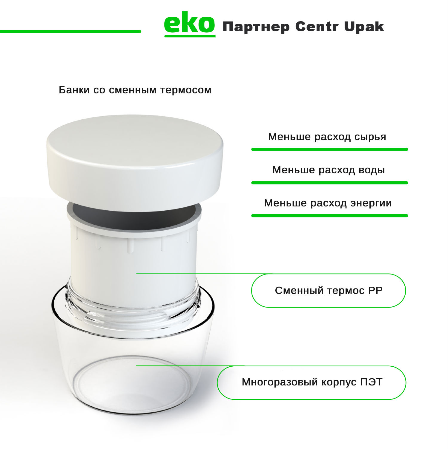 Составная конструкция позволяет отдельно утилизировать и перерабатывать термосы, и повторно использовать корпуса банок. Такая технология позволяет снизить потребление сырья, энергии и воды при производстве и переработке.