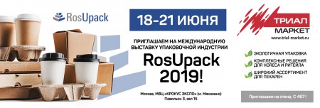 С 18 по 21 июня «Триал Маркет» примет участие (стенд С 467, павильон 3, зал № 15) в крупнейшей в России и Восточной Европе выставке упаковочной индустрии RosUpack 2019.