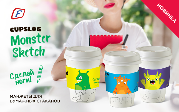 Новинка в ассортименте компании - интерактивные кап-холдеры (манжеты) для бумажных стаканов 250-300 мл CUPSLOG Monster Sketch.