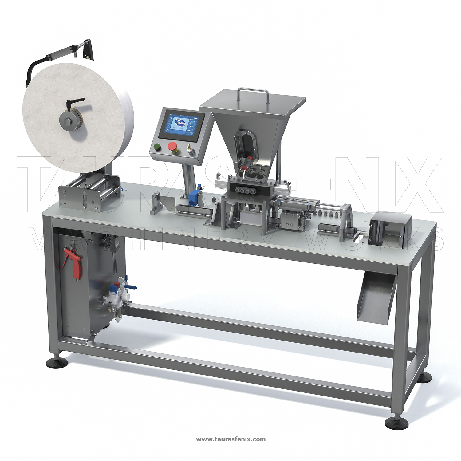 Требования к дозированию такого мелкодисперсного порошка высоки. При дозе от 0,5-1 гр. погрешность в фасовке должна быть минимальной, именно такой успешный результат был получен в ходе запуска и дальнейшей эксплуатации новой разработки ТАУРАС-ФЕНИКС. Машина крайне проста в управлении и не требует работы высококвалифицированного персонала. Производители позаботились о снижении затрат и времени на обслуживание за счет упрощения механических узлов и сокращения элементов подвижных частей оборудования, которые требуют периодической смазки. Стоит отметить также минимальную потребляемую электроэнергию: единственный элемент, работающий за счет прямого подключения электроэнергии, – это тены, нагревающие пленку для формирования швов; все остальные узлы работают с помощью пневматики.