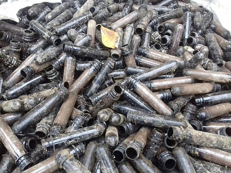 Грязную ПЭТ преформу, которую невозможно отмыть, НЕ БЕРЁМ (с резьбой в земле и т. д.)