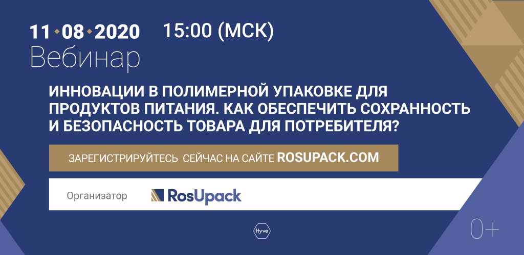Команда RosUpack подготовила для вас обзор современных технологий и инноваций в области пищевой упаковки и приглашает вас принять участие в вебинаре ИННОВАЦИИ В ПОЛИМЕРНОЙ УПАКОВКЕ ДЛЯ ПРОДУКТОВ ПИТАНИЯ. КАК ОБЕСПЕЧИТЬ СОХРАННОСТЬ И БЕЗОПАСНОСТЬ ТОВАРА ДЛЯ ПОТРЕБИТЕЛЯ? Вебинар состоится 11 августа 2020 (вторник) в 15:00 (МСК).