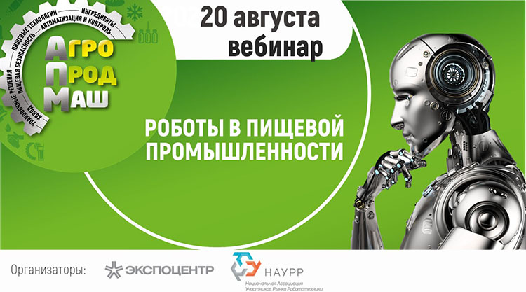 20 августа в рамках подготовки выставки «Агропродмаш-2020» состоится вебинар «Роботы для пищевой промышленности», организованный АО «ЭКСПОЦЕНТР» и Национальной ассоциацией участников рынка робототехники.