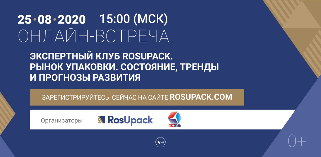 Hyve Group и Национальная конфедерация упаковщиков («НКПак») приглашают вас принять участие в первой онлайн-встрече Экспертного клуба RosUpack на тему «РЫНОК УПАКОВКИ. СТАТИСТИКА. ТРЕНДЫ. ПРОГНОЗЫ».