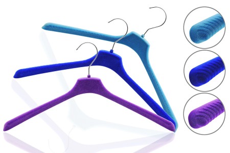 Флокированная вешалка для одежды смотрится стильно и респектабельно, создавая впечатление очень дорогой модной вещицы, которую приятно держать в руках.