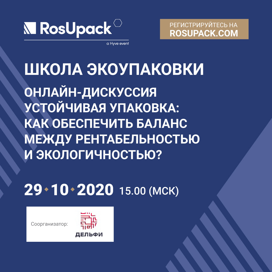 29 октября 2020 года состоится онлайн-дискуссия «Устойчивая упаковка: как обеспечить баланс между рентабельностью и экологичностью».