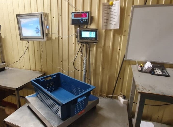 Заказ клиента со списком необходимых продуктов к взвешиванию автоматический поступает из 1С на индустриальный компьютер touch screen с высокой степенью защиты, находящийся в зоне сбора заказов. Оператор выбирает продукт из списка для взвешивания. На платформенные весы устанавливается пустая тара, которая наполняется выбранным продуктом до нужного количества. Вся информация отображается в программе.