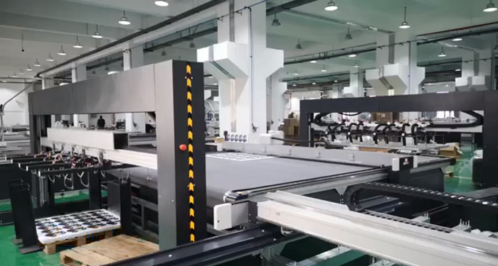 Работа системы синхронизируется с самими раскройным комплексом. В ней предусмотрен датчик петли и контроль кромки материала. Она состоит из двух блоков, которые располагаются с одной и с другой стороны оборудования. Достаточно просто настроить систему, загрузить материалы и и через некоторое время получить тираж готовой продукции.