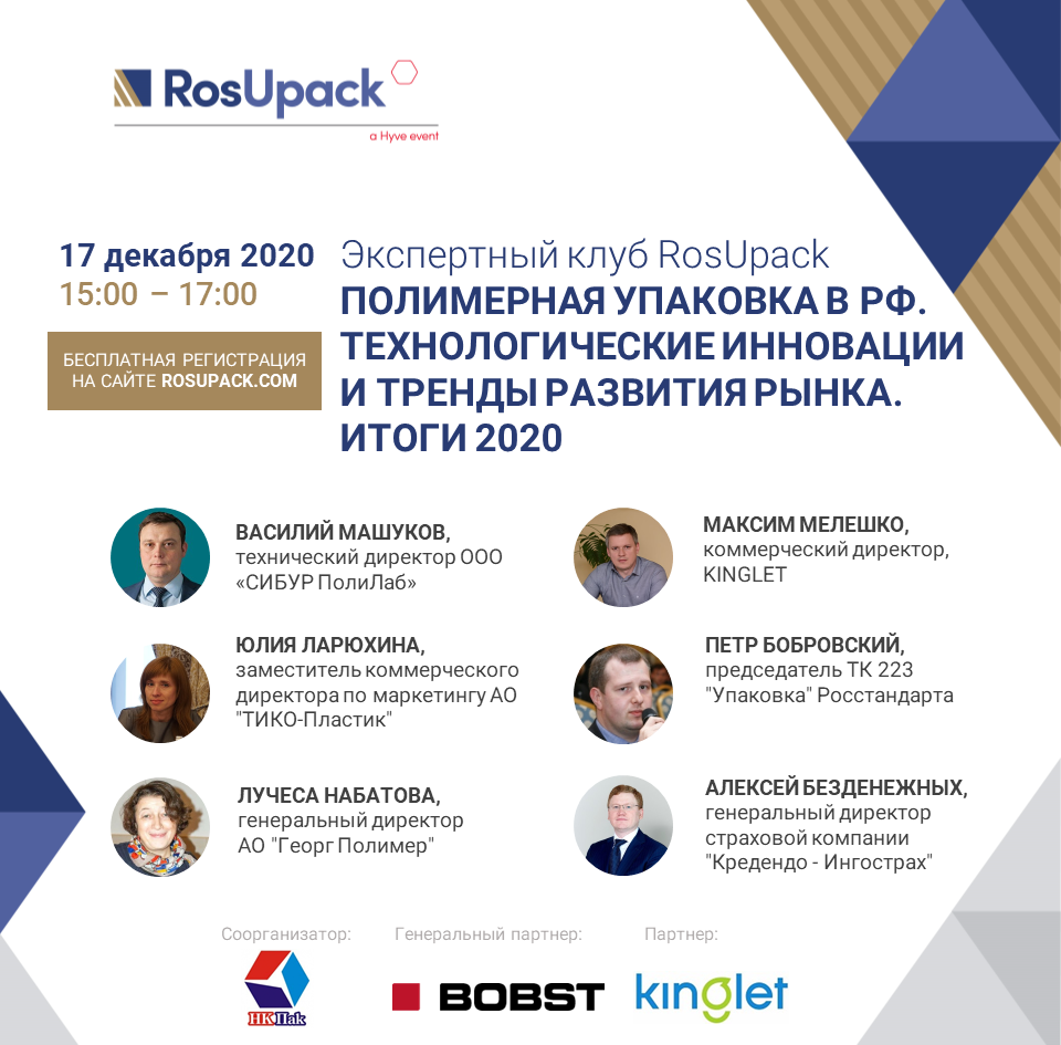 Ищите аналитику по рынку полимерной упаковки в России? Регистрируйтесь на онлайн-встречу Экспертного клуба RosUpack ПОЛИМЕРНАЯ УПАКОВКА В РФ. ТЕХНОЛОГИЧЕСКИЕ ИННОВАЦИИ И ТРЕНДЫ РАЗВИТИЯ РЫНКА. ИТОГИ 2020 и узнайте о последних тенденциях развития отрасли полимерной упаковки от ведущих экспертов.
