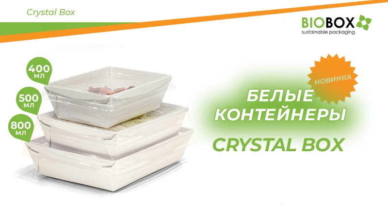 United Packaging Company представляет белые контейнеры Crystal Box - элегантные и практичные. Идеальны для доставки, продажи на вынос, выкладки на витрине.