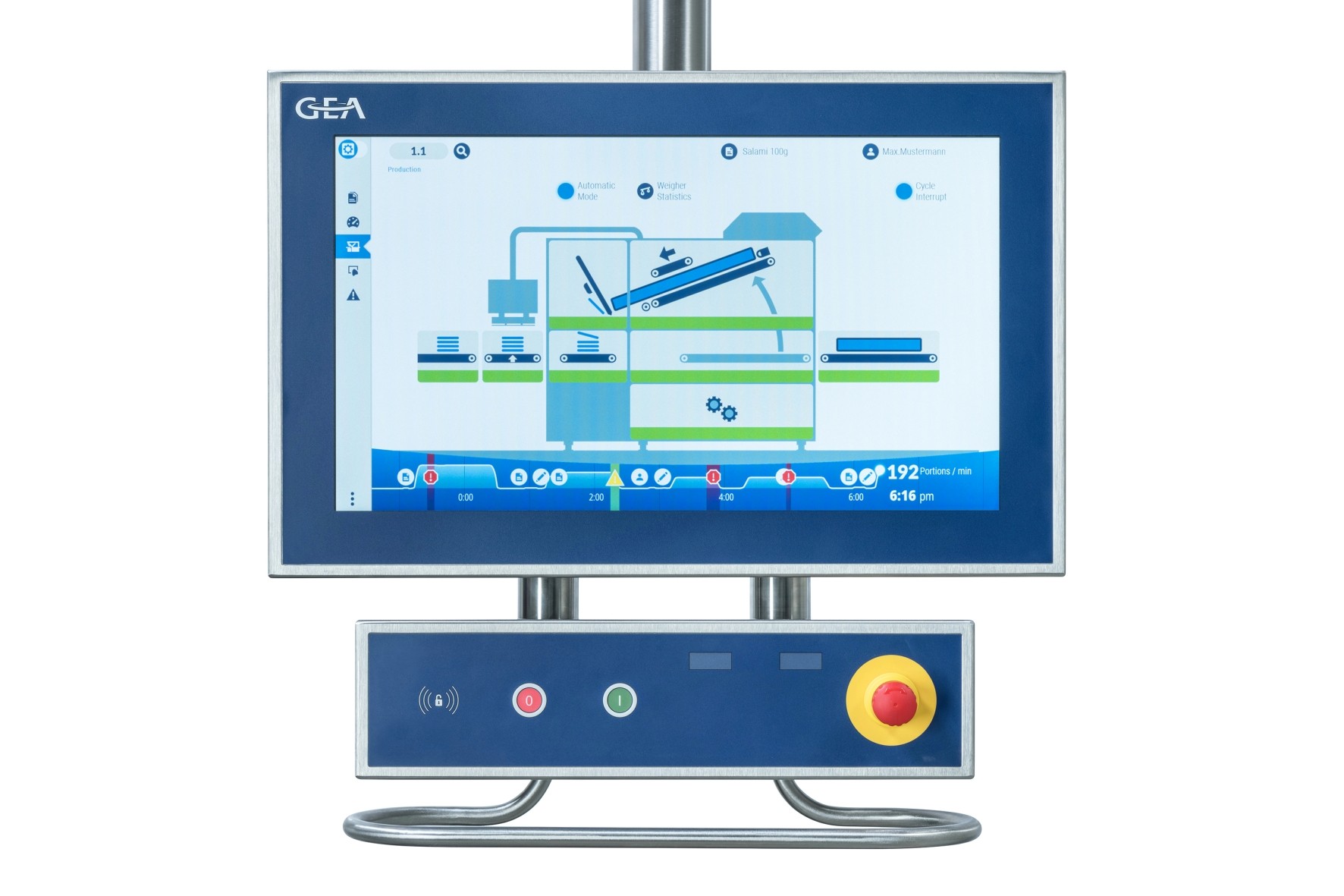 Новая полноцветная панель оператора с высоким разрешением и 21,5-дюймовым дисплеем обеспечивает отображение окна высокой четкости в новой системе управления GEA SmartControl. Новая система дает четкое представление о состоянии и работе машины. Она имеет множество функций с оптимальным управлением рецептами и доступом ко всем необходимым документам, включая руководство пользователя. Соответствующие права могут быть назначены каждому отдельному оператору по желанию и будут защищены с помощью личных учетных записей RFID. Система также теперь предлагает дополнительное управление линией, которое позволяет уполномоченному лицу управлять всей линией с любой отдельной панели управления, например изменять рецепт на одной панели для всей линии.
