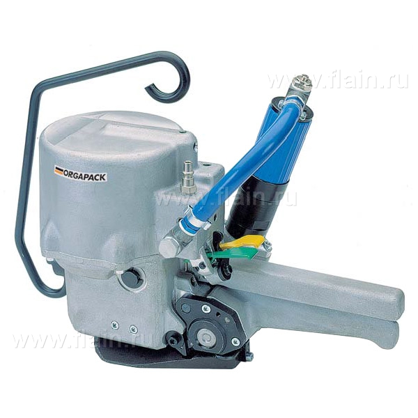 может применяться для упаковки грузов стальной лентой 19-20 мм шириной. Он может создавать натяжение при обвязке до 6500Н. Работает при давления сжатого воздуха в 6 BAR.