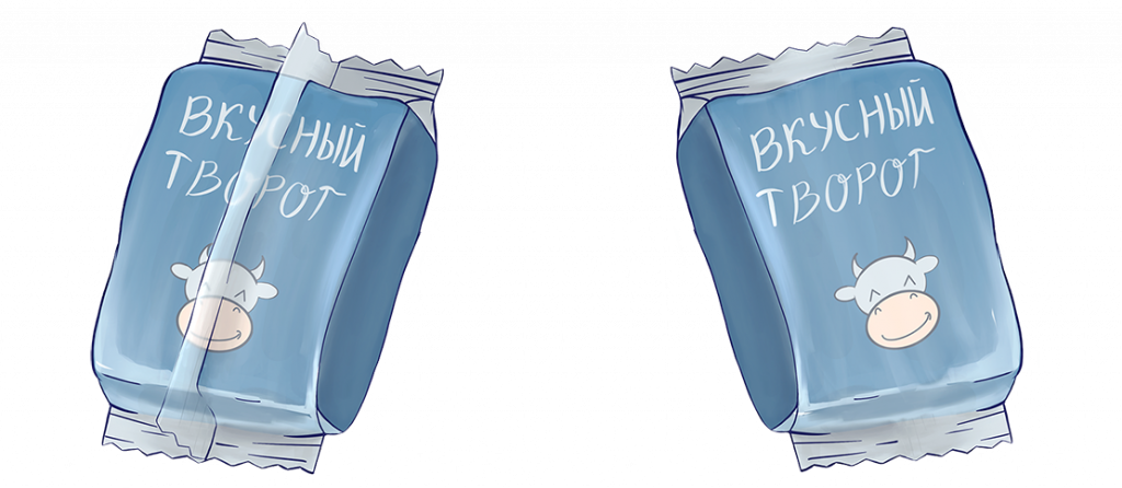 Линепак ФА формирует пакет с продольным швом в нижней части — такова особенность горизонтальных машин с верхней размоткой. Так что если использовать прозрачную плёнку, то шов пакета флоупак будет проходить поверх лицевой стороны первичной упаковки брикета и перекрывать её дизайн, включая логотип и название продукта. Запакованный таким образом творог будет проигрышно смотреться на полке магазина.