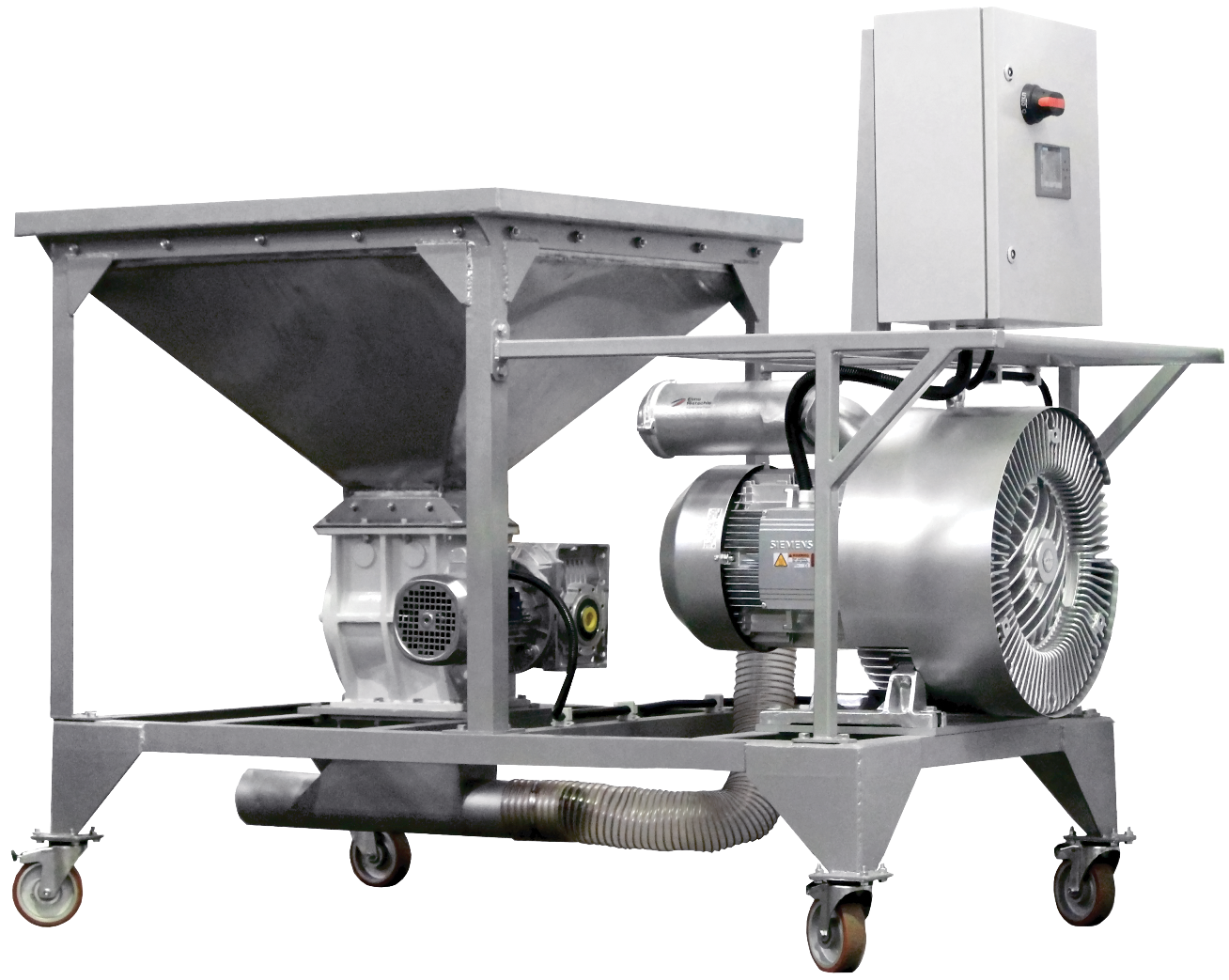 - Разгрузочный бункер из нержавеющей стали. Высота бункера подобрана для более удобной работы оператора.