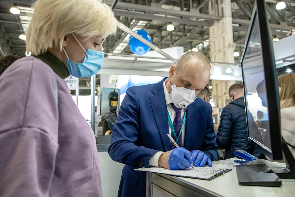 На входе посетители предъявляют QR-коды, получают специальные браслеты, без которых невозможно попасть в выставочный зал. Для тех, у кого нет QR-кода организована оперативная сдача экспресс-теста на covid-19, по результатам которого можно получить вожделенный код.