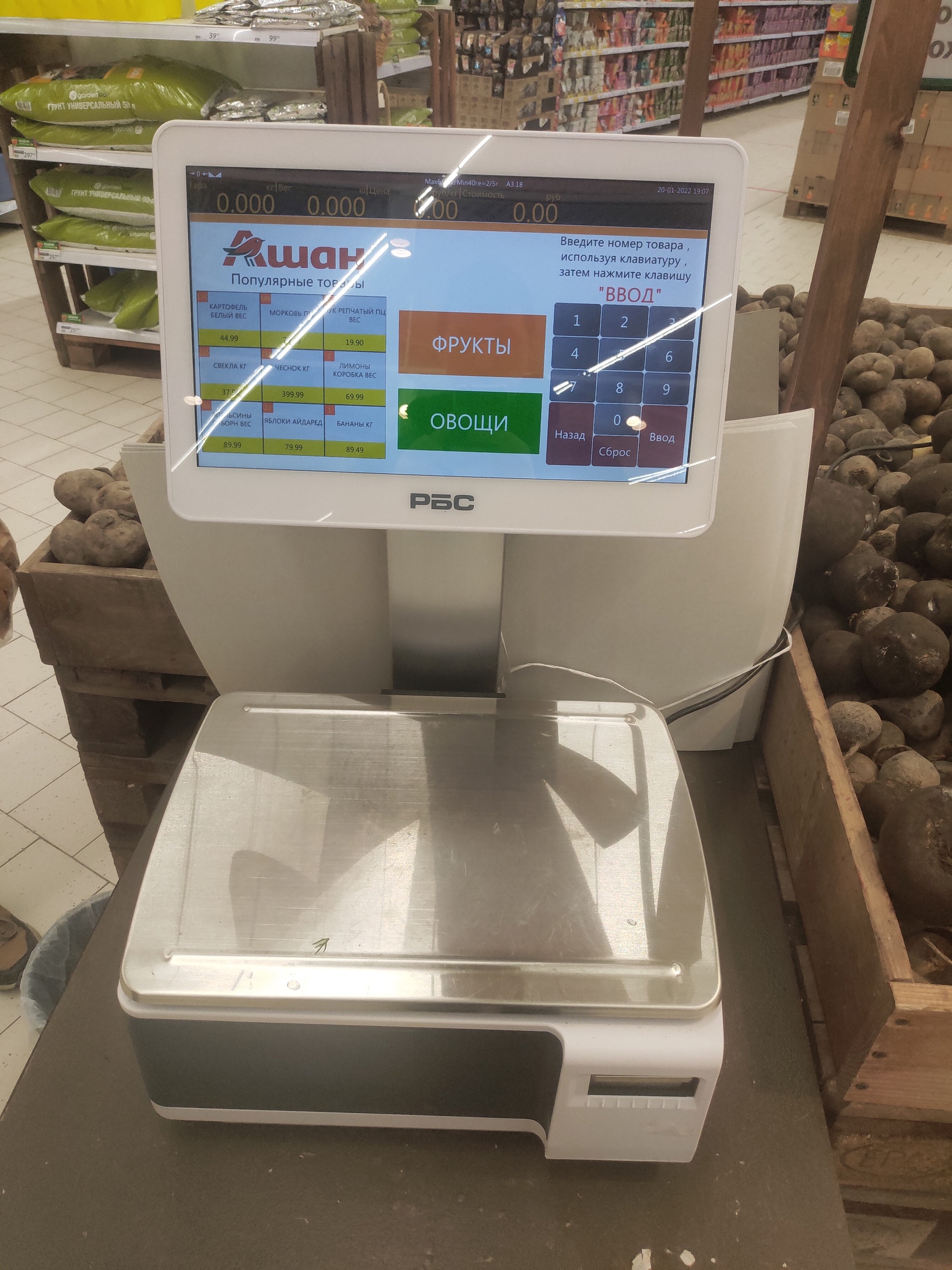 В магазинах сети в г. Ростов-на-Дону и г. Тамбов были установлены компьютерные весы KS4010 touch дисплеем 15” и печатью этикетки для работы в отделах самообслуживания.