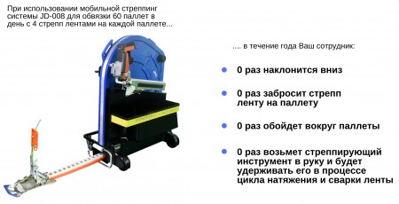 Изучайте, выбирайте, используйте мобильные системы обвязки паллет JD-008 на Вашем производстве или складе, и Вы получите удовольствие от работы и явные конкурентные преимущества в сравнении с Вашими партнерами по бизнесу.