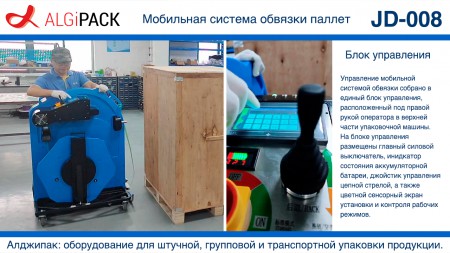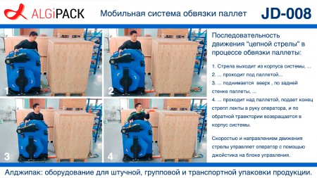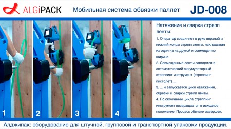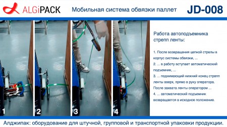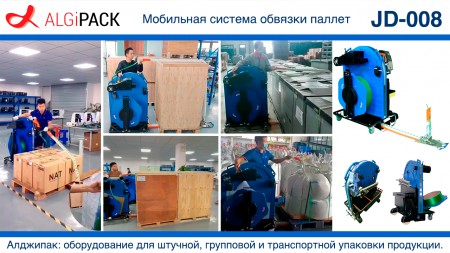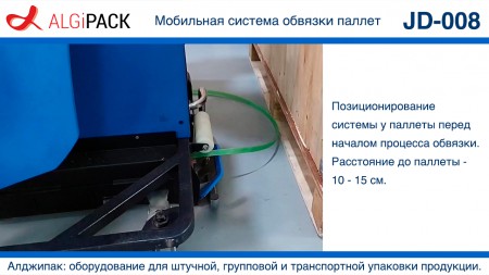 Видео работы мобильной системы обвязки паллет JD-008 на производстве: