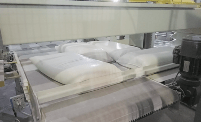 Проект включил в себя: подающие конвейеры и устройство выравнивания для мешков, автоматический классический послойный палетайзер, диспенсер укладки картонного листа на палету, магазин палет, отводные конвейеры для сформированной палеты, а также автоматическую вертикальную обвязочную раму для строповки палеты полиэстеровой лентой. Всё оборудование европейского производства.