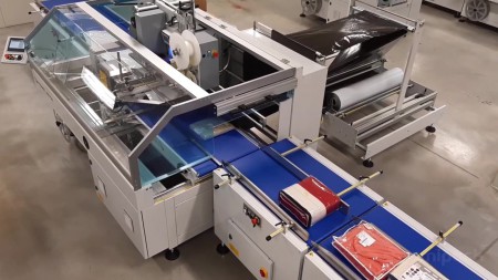 Описанные выше задачи вторичной упаковки решаются использованием термоусадочной полиолефиновой (ПОФ) или полиэтиленовой (ПЭ) пленки, как прозрачной, так и цветной (окрашенной) или имеющей предварительно нанесенное полиграфическое заполнение. При работе комплекта оборудования, продукция сначала упаковывается термоножом в трехшовный пакет, а затем проходит через нагретый термотоннель, в котором упаковочный материал усаживается по внешним габаритам продукции.
