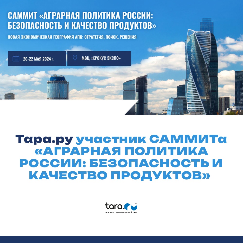 Компания Тара.ру примет участие в САММИТе «Аграрная политика России: безопасность и качество продуктов», который пройдет с 20 по 22 мая в МВЦ «Крокус Экспо».