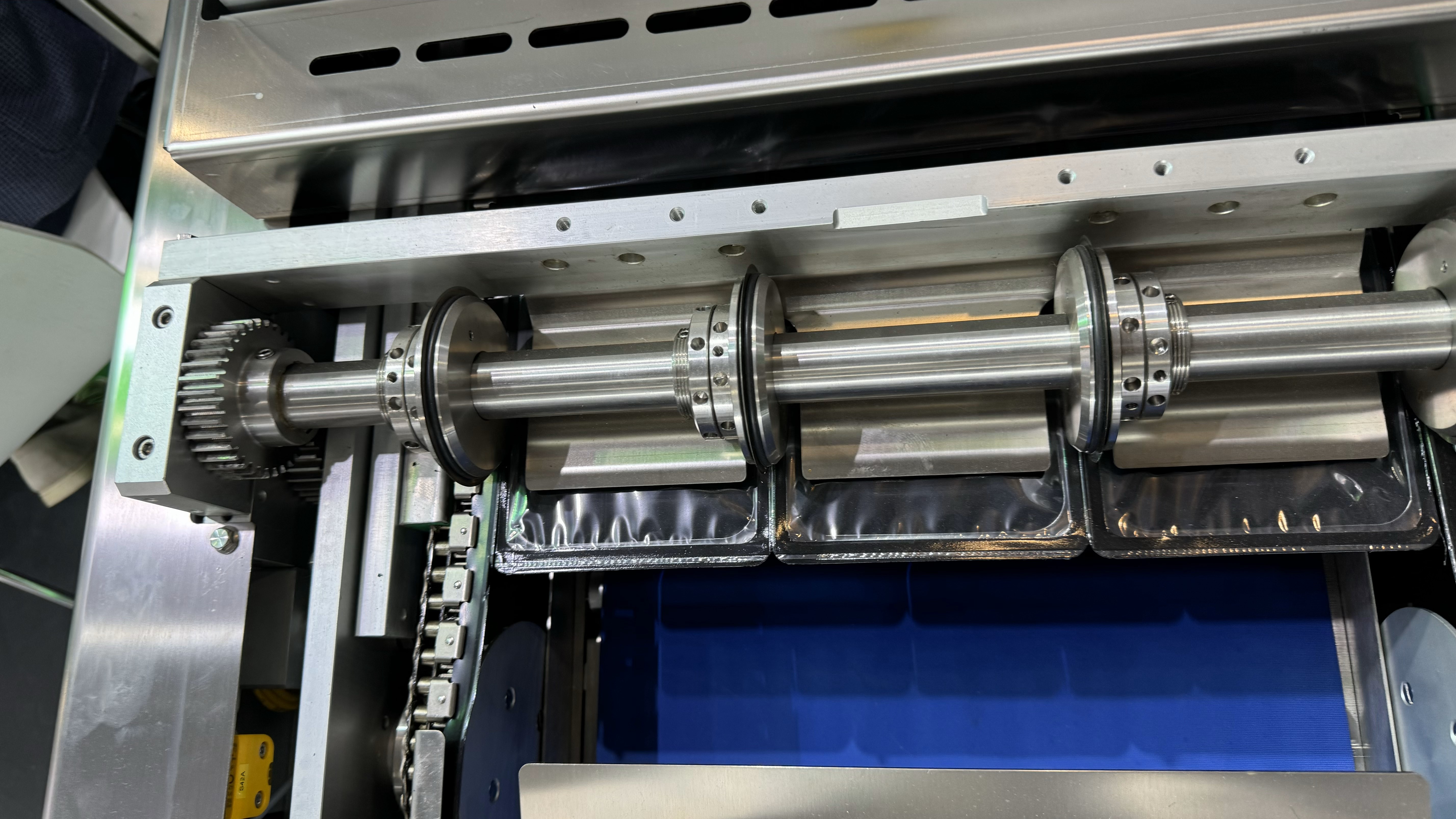 Качество валов для термоформовочной пленки. Как мы уже говорили, процесс упаковки на термоформере начинается с подачи пленки на линию. Чем равномернее подается пленка, тем четче процесс создания форм для продукта. Нержавеющие валы для пленки с пневматическими расширителями обеспечивают быструю смену рулонов и позволяют позиционировать пленку точнейшим образом. Более бюджетные решения держателей рулонов – стандартные валы с механической регулировкой и наличием пластиковых деталей, увеличивают время замены пленок, вероятность поломок и частоту ремонта оборудования.
