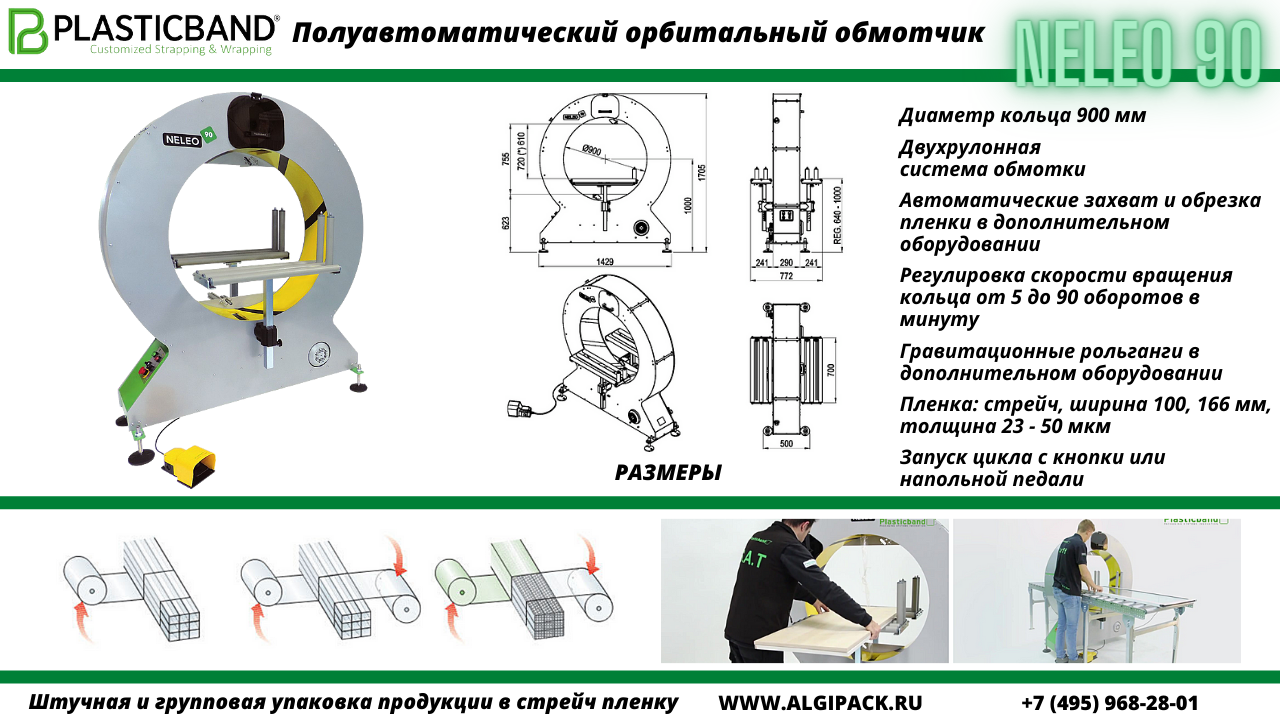 Алджипак: универсальный полуавтоматический орбитальный обмотчик стрейч пленкой модель NELEO 90