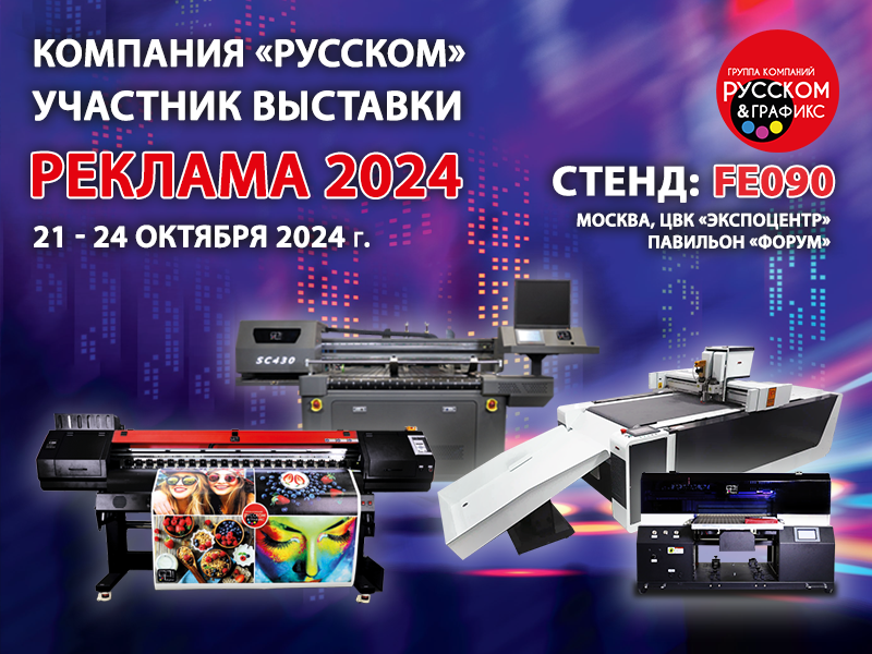ГК «РУССКОМ» на 31-ой Международной специализированной выставке «РЕКЛАМА-2024» на своём стенде FE090 в павильоне «ФОРУМ» ЦВК «Экспоцентр» представит широкий ассортимент самого актуального оборудования, производимого под собственными брендами.