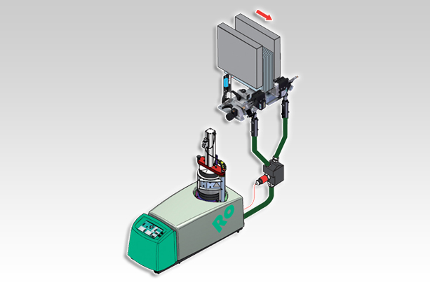 The technology of the PUR 35 MOD SpineCoat hotmelt unit is based on a highly dynamic servo drive combined with the volumetric material handling. The hotmelt unit is the optimal addition to the SpineCoat application head. The targeted system solution guarantees clean melting and volumetric pumping of the glue with intermittent application. The mounting plate for the SpineCoat application unit serves as a mechanical interface with the host machine. If a complete integration into the bookbinding machine is desired, it needs to be executed by a third party.