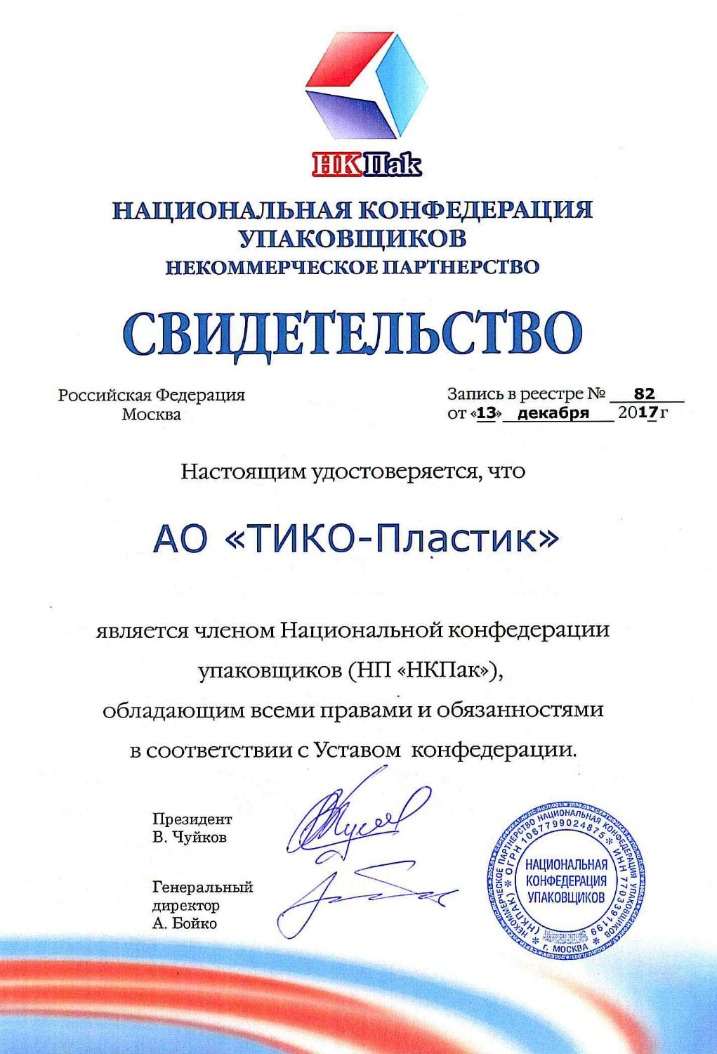 С января 2018 года ТИКО-Пластик входит в Некоммерческое партнерство «Национальная конфедерация упаковщиков» («НКПак») – отраслевое объединение, действующее в сфере упаковки.