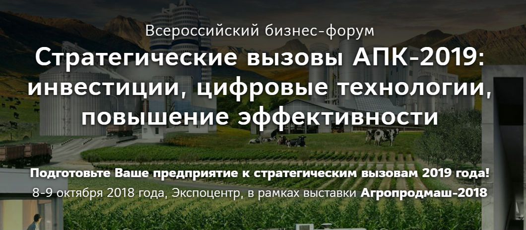 Впервые на выставке пройдет Всероссийский бизнес форум «Стратегические вызовы АПК-2019: инвестиции, цифровые технологии, повышение эффективности». Организатор: КВК «Империя». В нем примут участие представители государственных регулирующих органов, более 250 топ-менеджеров компаний агропромышленного комплекса, ведущие отраслевые эксперты и профильные СМИ. Они обсудят широкий круг тем, включая стратегические вызовы АПК России и основные векторы его развития на 2019-2022 гг., вопросы государственной поддержки, внедрение цифровых технологий как главного драйвера роста АПК и другие.