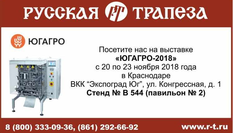 "Русская Трапеза" приглашает на агропромышленные выставки "ЮГАГРО-2018" и "РОСКРЫМАГРО-2018"