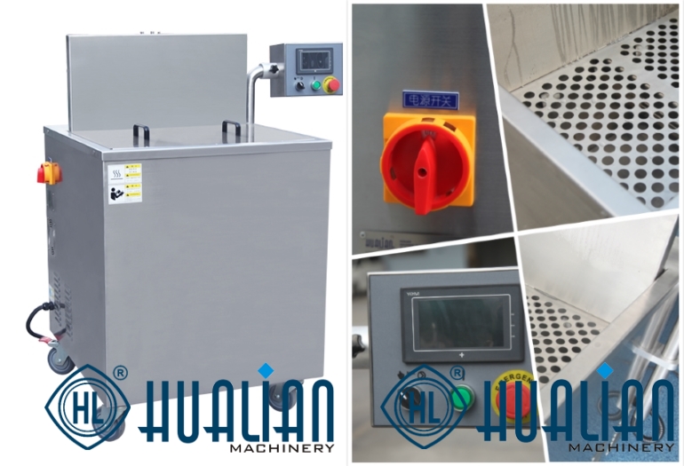 Термотанк используется для упаковки различных пищевых и непищевых продуктов в вакуумную упаковку с эффектом усадки. Такое оборудование работает в тандеме с вакуум-упаковочными аппаратами – сначала продукт упаковывается в вакууме в специальный термоусадочный пакет с барьерными свойствами, затем готовый пакет укладывается на платформу термотанка, платформа погружается в емкость с горячей водой на несколько секунд. Под воздействием температуры пакет быстро сокращает свою площадь и плотно облегает продукт, принимая его форму.