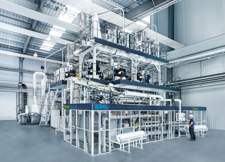 As the only brand-name supplier in this segment, SML is covering stretch wrap film lines of all sizes, offering solutions in widths from 1,500mm to 6,000mm. The new PowerCast XL is the latest highlight in SML’s extensive portfolio. It is a sophisticated further development of SML’s well-proven PowerCast concept, clearly outperforming similar systems in terms of efficiency, production stability and flexibility. The PowerCast XL has a net film width of 4,500mm. Without increasing the trim ratio, the new line is able to produce 400, 450, 500 and 750mm wide rolls – a key advantage to serve individual requirements in the market. Other technical features of the new system are: