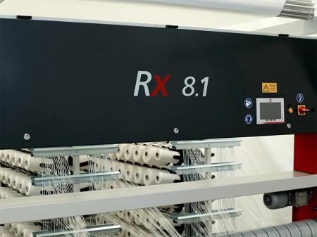 Like all models of the RX series, the RX 8.1 is equipped with numerous technological advantages. Due to its special reed and shuttle design, the machine does not have any sliding parts that would require lubrication, and thus leaves no traces of oil on the fabric. This property allows for the optimal adherence of the coating to the fabric and eliminates concerns regarding the use of the fabric in food applications. Moreover, the RX 8.1 produces fabric of highest quality at lowest production cost per square meter, as the production speed of 800 picks/minute is high while the number of warp breaks is low. Other advantages are the machine's user-friendliness, the energy-saving motors as well as a low noise level.